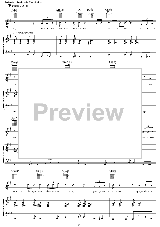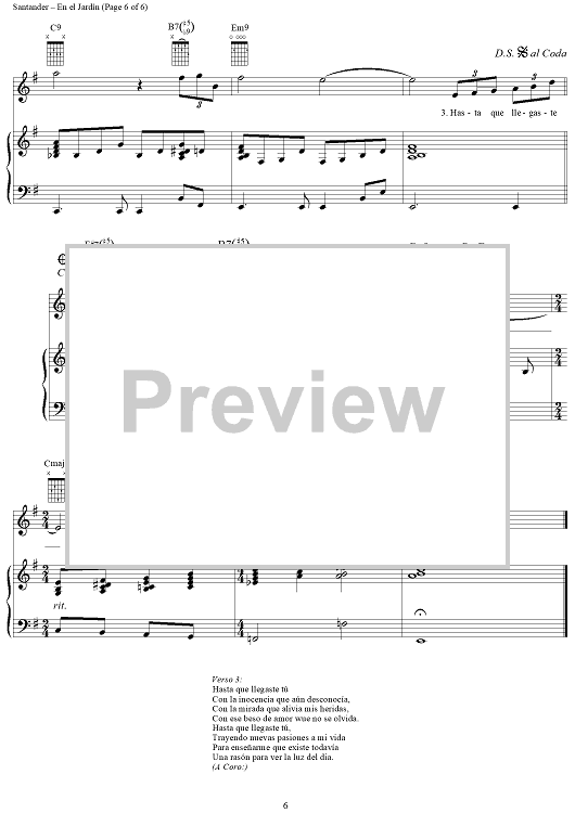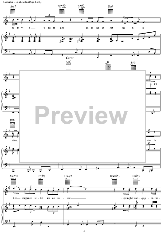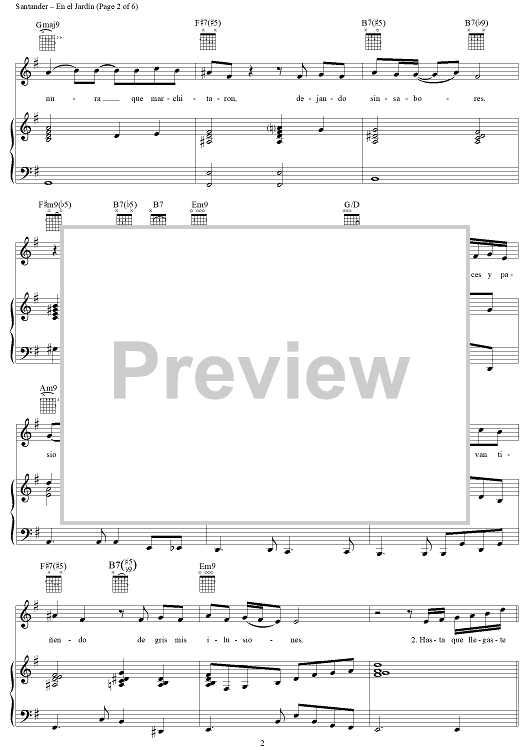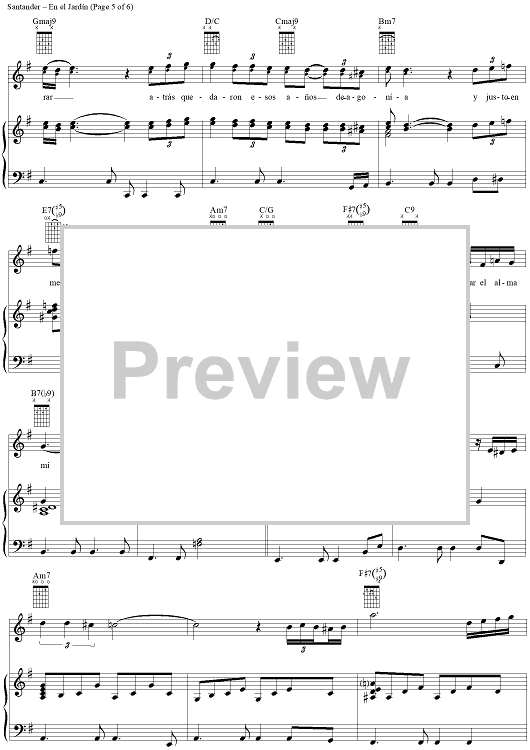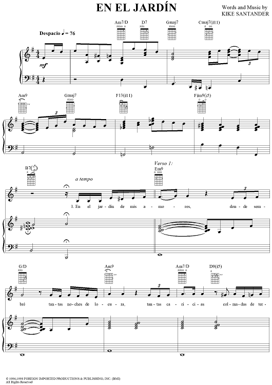 Digital Sheet Music for En el Jardín by Kike Santander scored for Piano/Vocal/Chords; id:256004