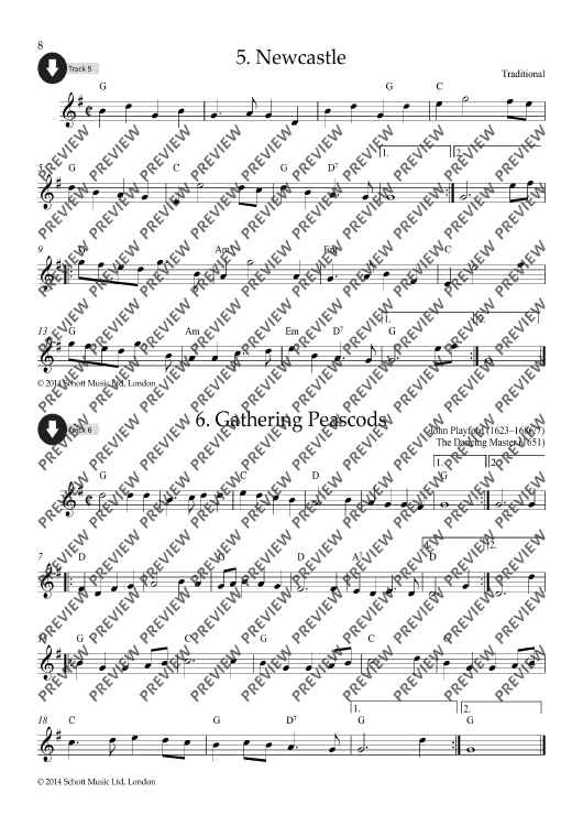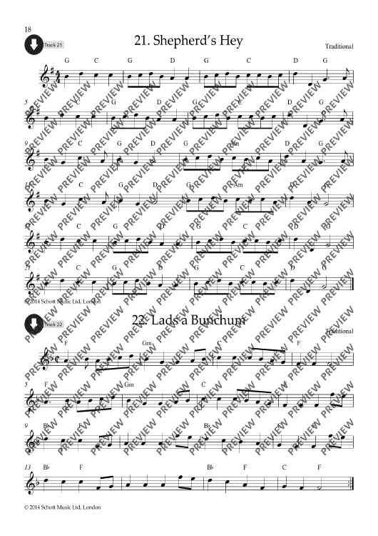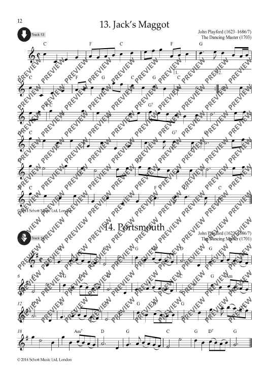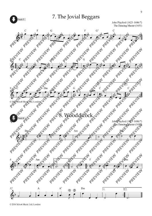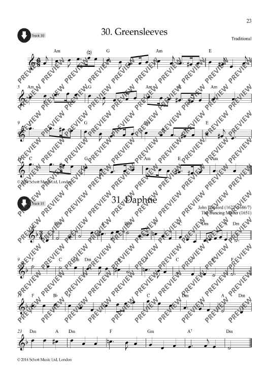'English Folk Tunes for Descant Recorder' is a collection of 62 arrangements for descant recorder, of traditional tunes including a range of styles such as Ballads, Hornpipes, Jigs and more. Experienced recorder player and co-author of the Baroque Recorder Anthology series, and Fun and Games with the Recorder series amongst others, Peter Bowman provides notes on all of the styles covered, as well as individual pieces. The volume is accompanied by a recording of all tunes performed by Kathryn Bennetts. German and French translations of all texts are available as pdf downloads from the Schott Music website as well as MP3 play-along tracks. Suitable for players of grades 3-8.