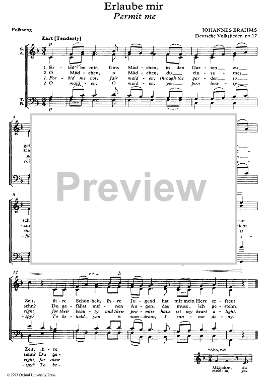 Digital Sheet Music for Erlaube mir by Johannes Brahms scored for SATB Choir; id:336823