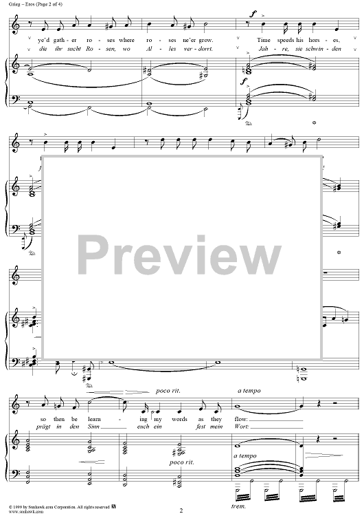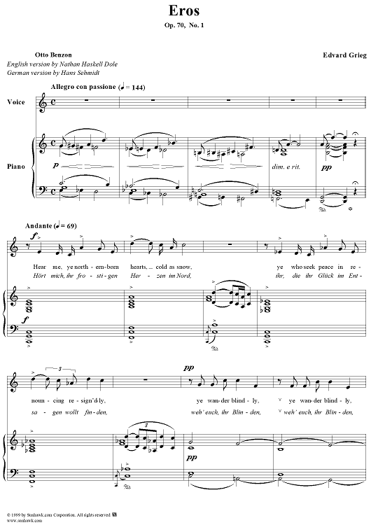 Digital Sheet Music for Eros by Edvard Grieg scored for Voice/Piano; id:263265