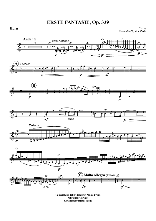 Digital Sheet Music for Erste Fantasie, Op. 339 - Horn in F by Carl Czerny, Eric Ruske scored for Horn/Piano; id:413824