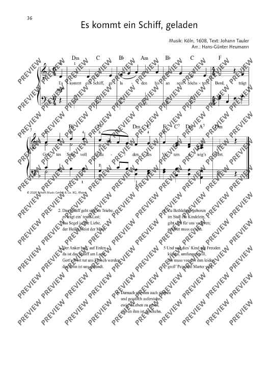 Digital Sheet Music for Es kommt ein Schiff, geladen by Johann Tauler, Hans-Guenter Heumann scored for Piano; id:495748