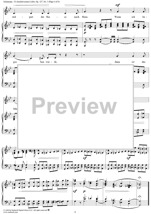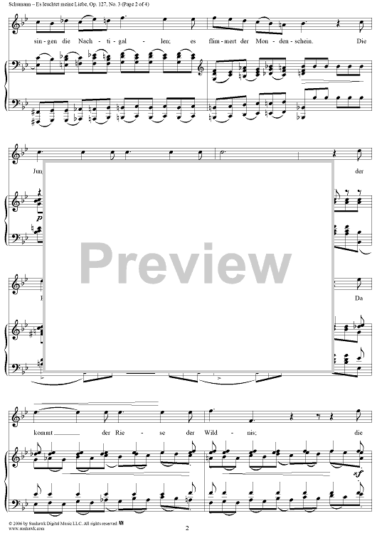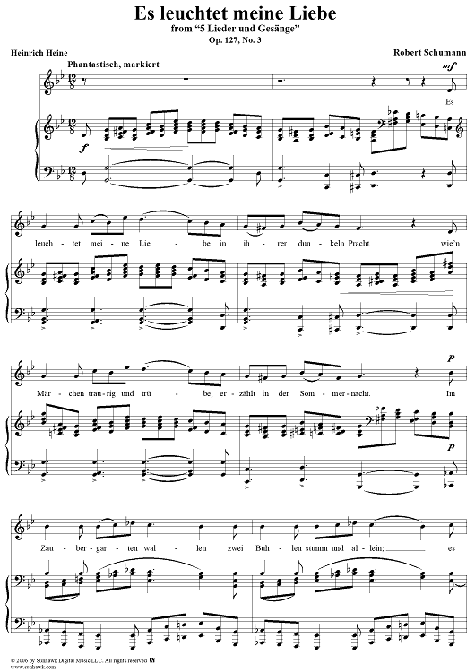 Digital Sheet Music for Es leuchtet meine Liebe, Op. 127, No. 3 by Robert Schumann, Heinrich Heine scored for Voice/Piano; id:316345
