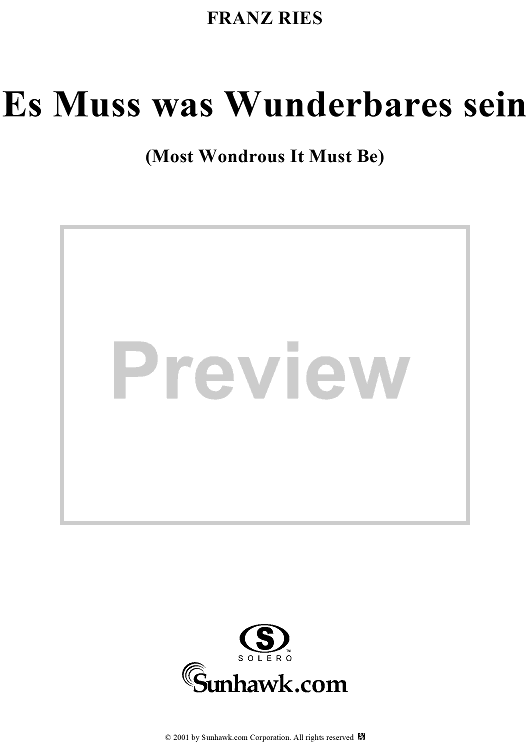 "Es Muss was Wunderbares sein (Most wondrous it must be)" Sheet Music by Franz Ries