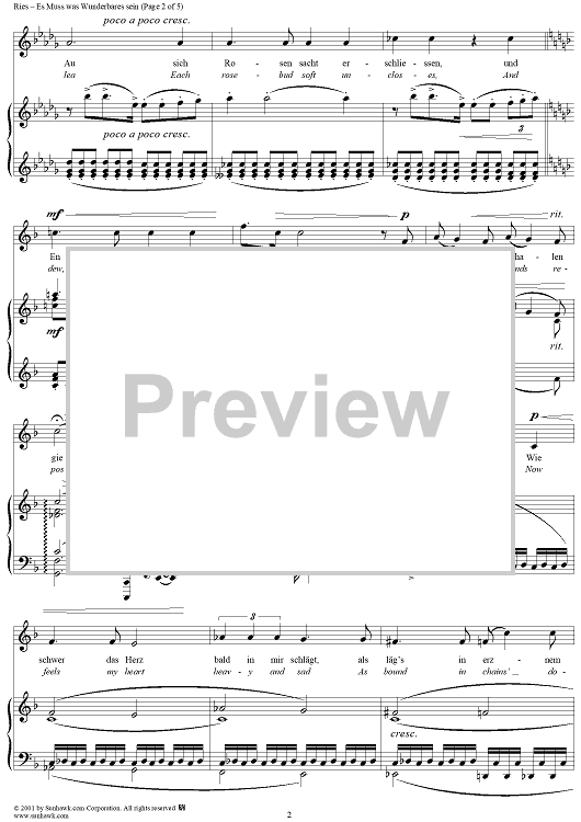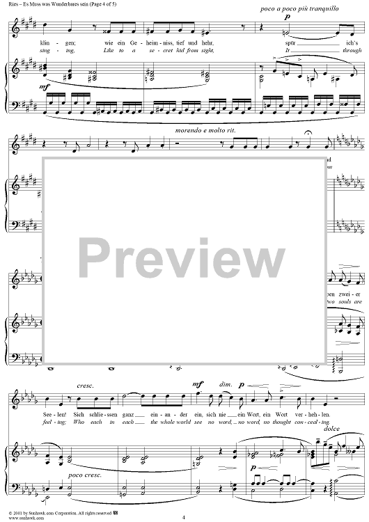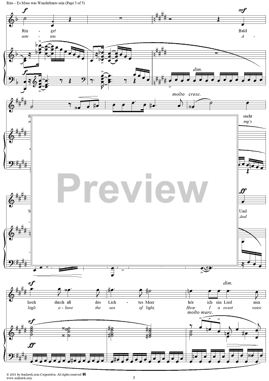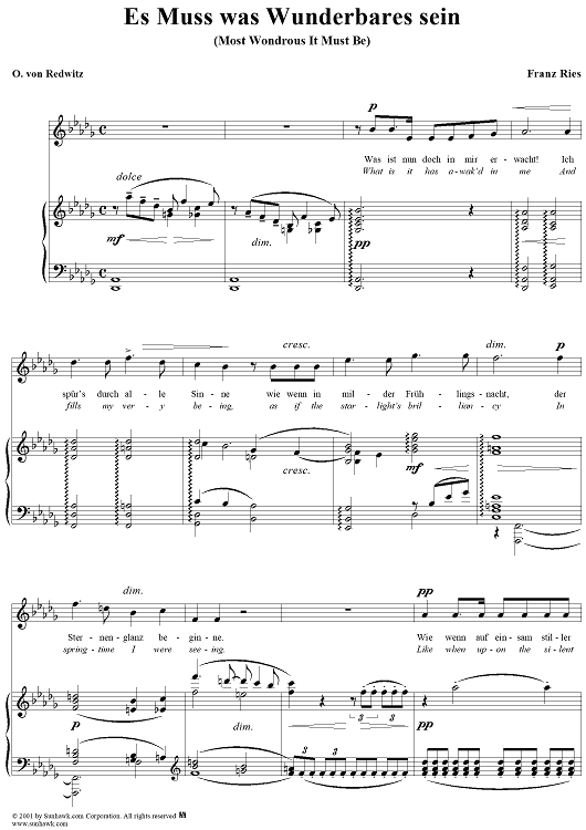 Digital Sheet Music for Es Muss was Wunderbares sein (Most wondrous it must be) by Franz Ries, O. Redwitz scored for Voice/Piano; id:255651