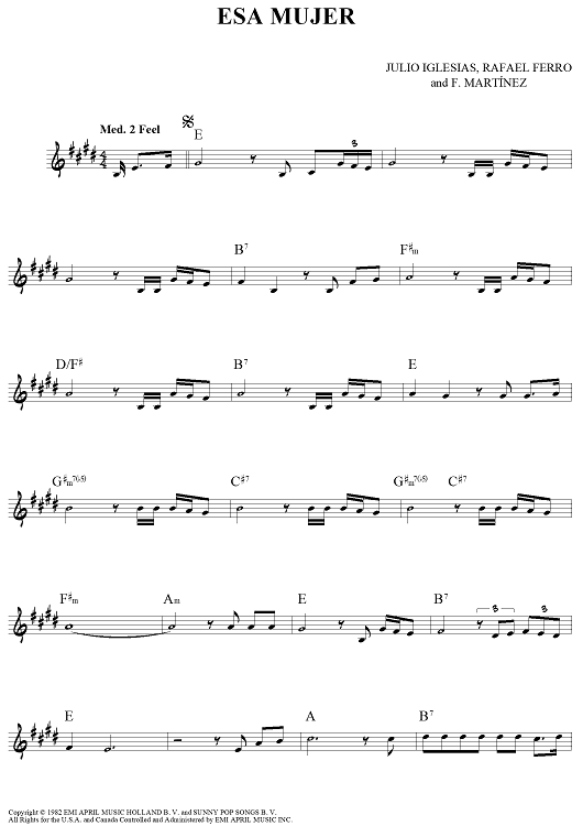 Digital Sheet Music for Esa Mujer by Julio Iglesias, Rafael Ferro, F. Martínez scored for Lead Sheet; id:448703