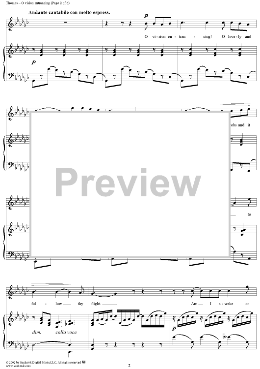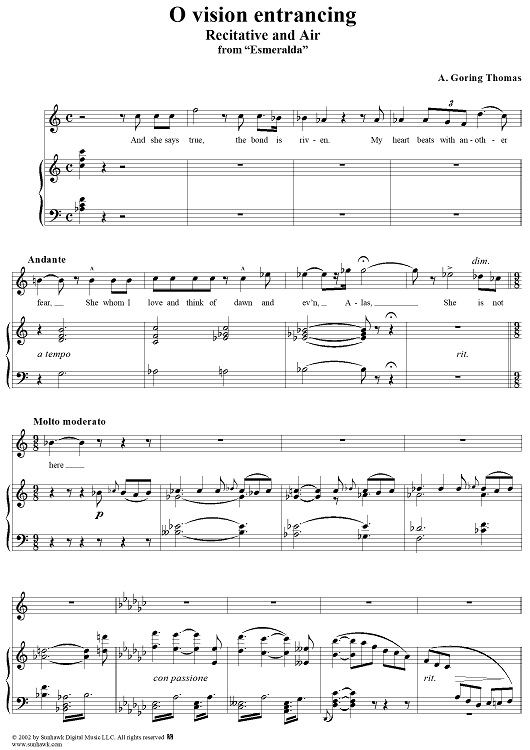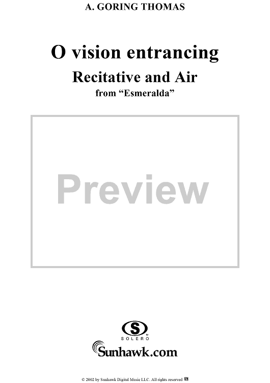 Digital Sheet Music for Esmeralda, "O vision entrancing" by Arthur Goring Thomas scored for Voice/Piano; id:253704