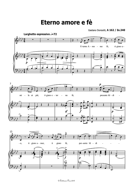 "Eterno amore a fe" Sheet Music by Gaetano Donizetti