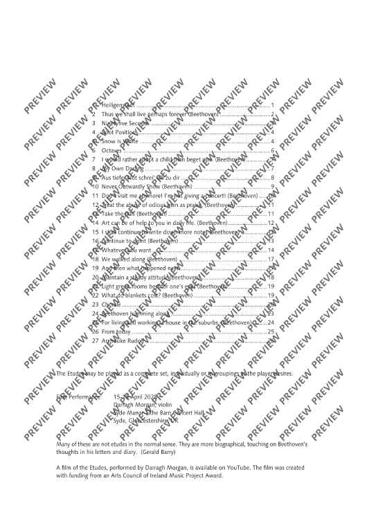 The Etudes may be played individually or as a collection in any order. Many of these are not etudes in the normal sense. They are more biographical, touching on Beethoven’s thoughts in his letters and diary. (Gerald Barry)