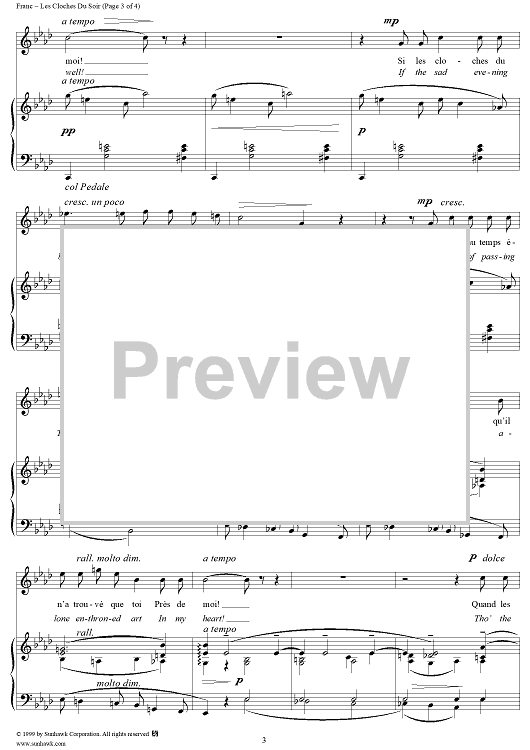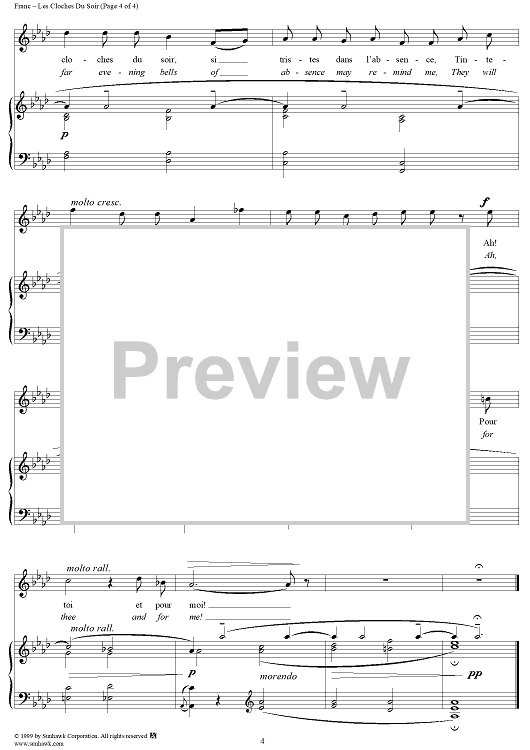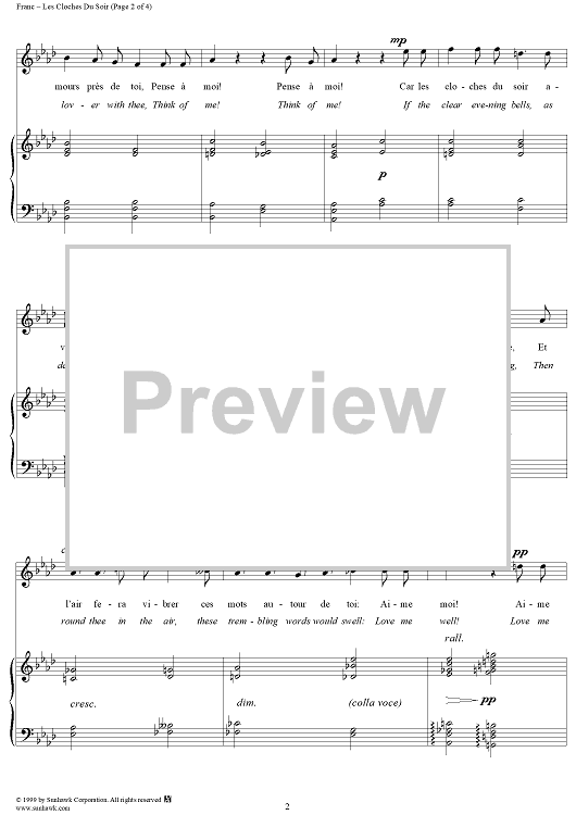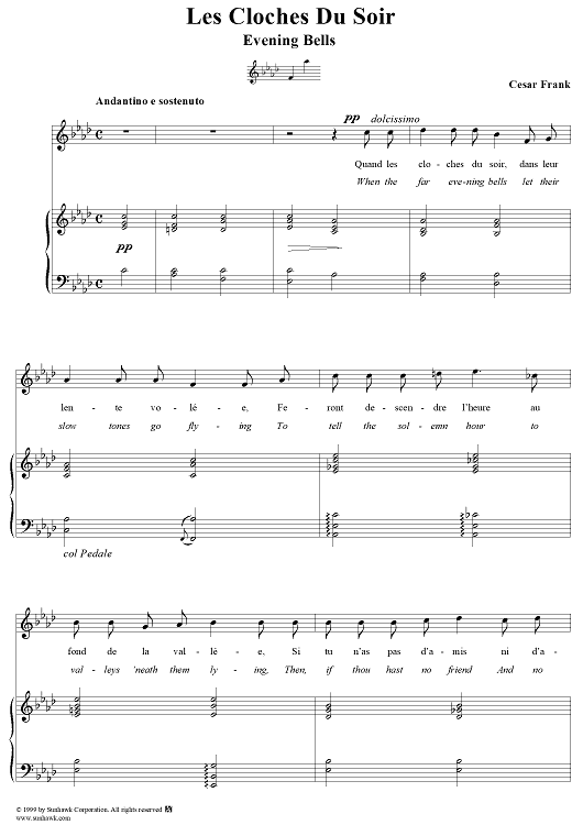 Digital Sheet Music for Evening Bells, Les Cloches du Soir by César Franck, M. Desbordes-Valmore scored for Voice/Piano; id:269482