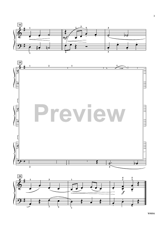 This classically-styled piece features a graceful melody that passes fluidly between the hands. Includes two- and three-note slur gestures, along with legato and staccato accompaniments.