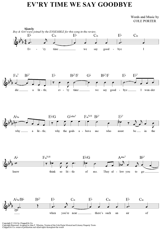 "Ev'ry Time We Say Goodbye" Sheet Music by Cole Porter