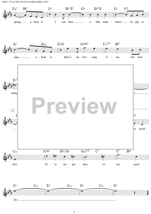 Digital Sheet Music for Ev'ry Time We Say Goodbye by Cole Porter scored for Lead Sheet; id:457100