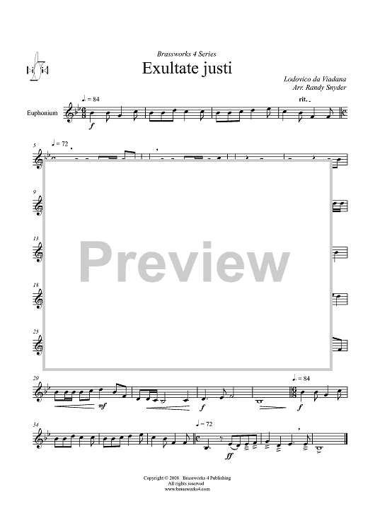 Digital Sheet Music for Exultate justi - Euphonium by Lodovico Grossi da Viadana, Randy Snyder scored for Brass Quartet; id:410608