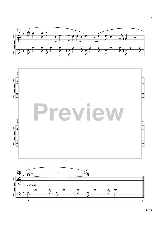 Hear medieval minstrels come and play as rhythmic open fifths introduce the airy, singing melody. The left hand plays a continuous ostinato, while right-hand embellishments and thirds add melodic interest. This texture demands a delicate touch.