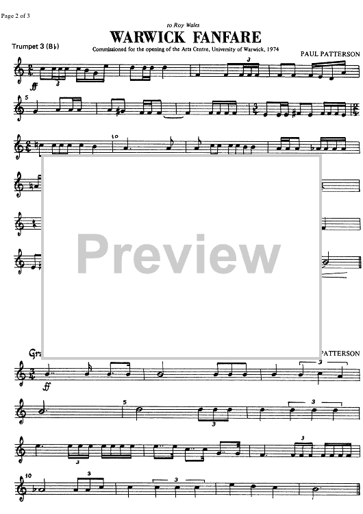 "Fanfares for Great Occasions - B-flat Trumpet 3" Sheet Music by Paul Patterson