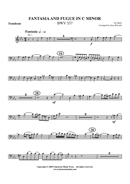 "Fantasia and Fugue in C Minor, BWV 537 - Trombone" Sheet Music by Johann Sebastian Bach