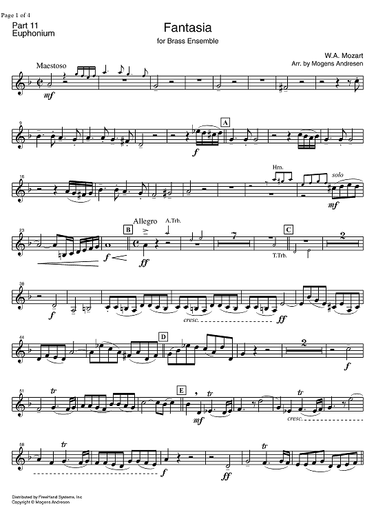 Digital Sheet Music for Fantasia KV608 - Euphonium by Wolfgang Amadeus Mozart, Mogens Andresen scored for Brass Ensemble; id:328334