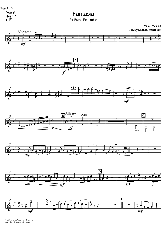 Digital Sheet Music for Fantasia KV608 - Horn by Wolfgang Amadeus Mozart, Mogens Andresen scored for Brass Ensemble; id:328329