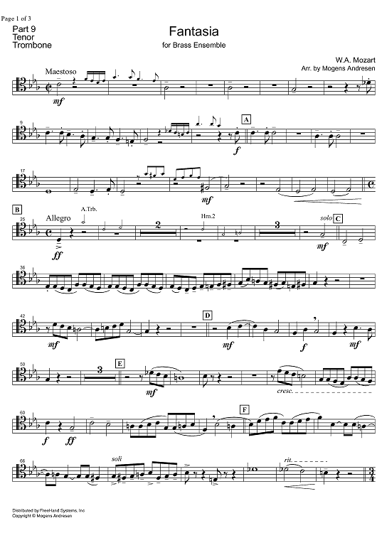 Digital Sheet Music for Fantasia KV608 - Tenor Trombone by Wolfgang Amadeus Mozart, Mogens Andresen scored for Brass Ensemble; id:328332