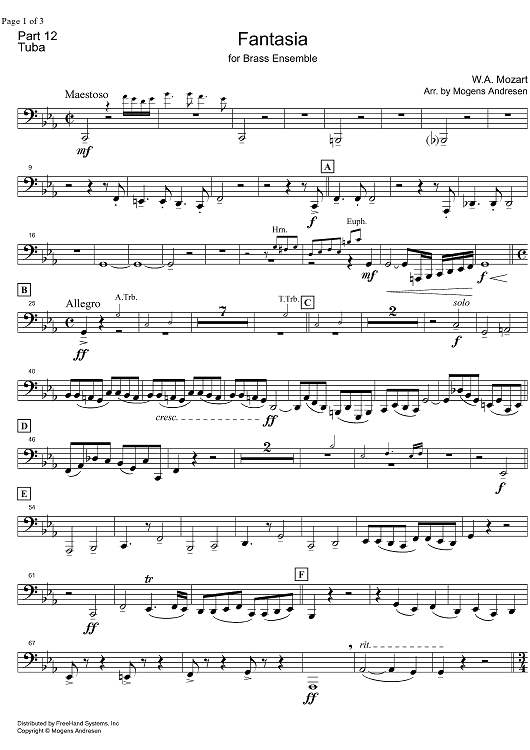 Digital Sheet Music for Fantasia KV608 - Tuba by Wolfgang Amadeus Mozart, Mogens Andresen scored for Brass Ensemble; id:328335