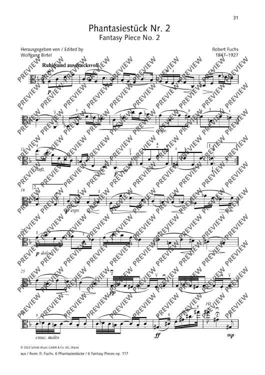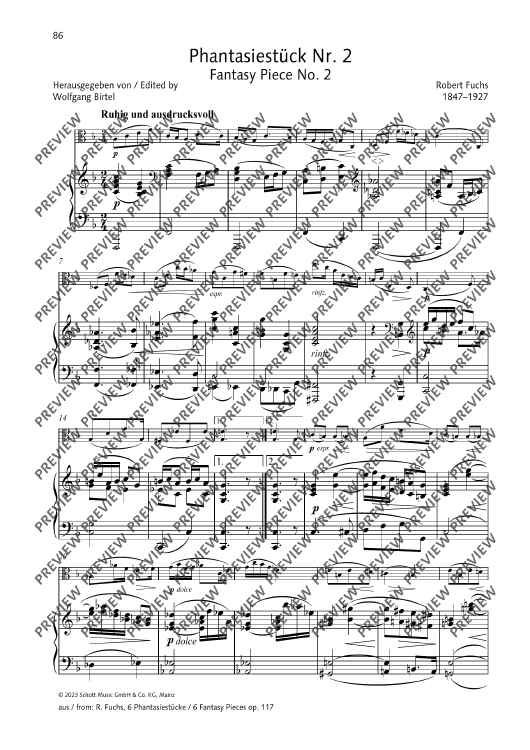 Digital Sheet Music for Fantasy Piece No. 2 by Robert Fuchs scored for Viola And Piano; id:499987