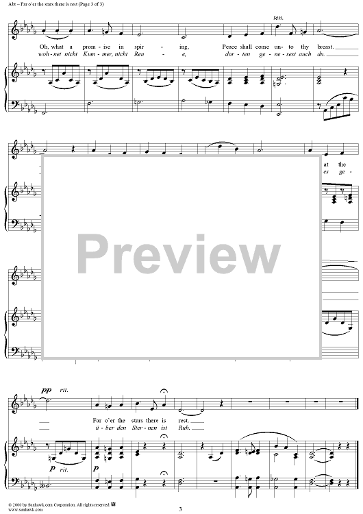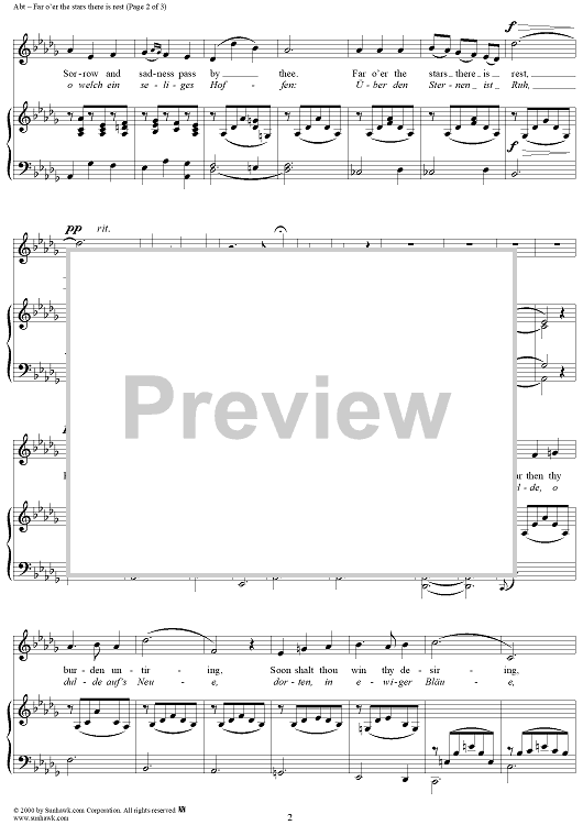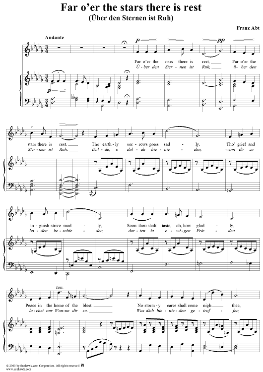 Digital Sheet Music for Far o'er the stars there is rest by Franz Abt scored for Piano/Vocal; id:250252