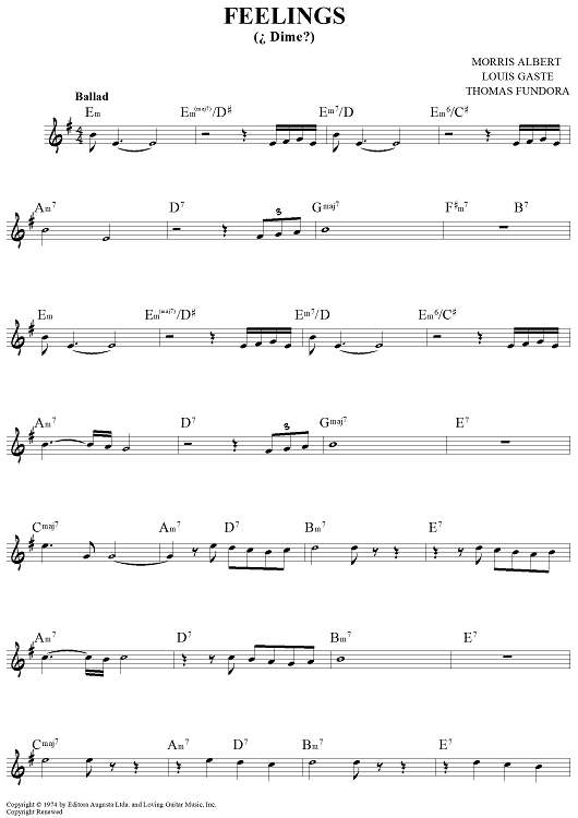 "Feelings (¿Dime?)" Sheet Music by Morris Albert