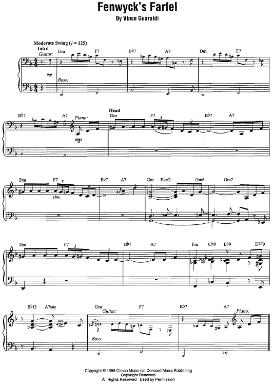 "Fenwyck's Farfel" Sheet Music by Vince Guaraldi