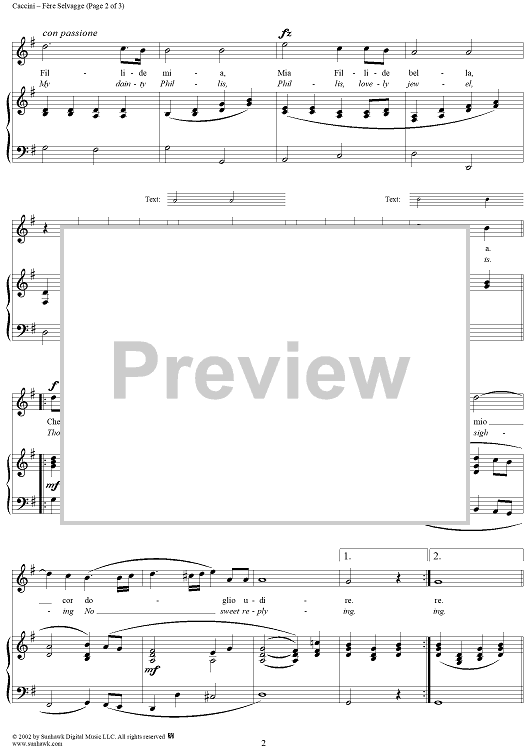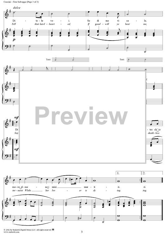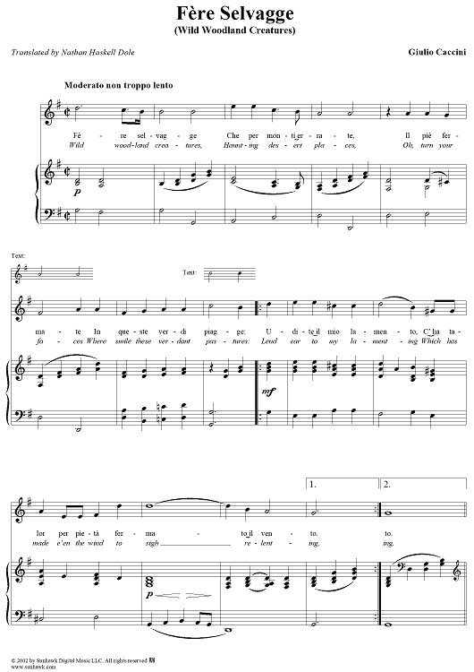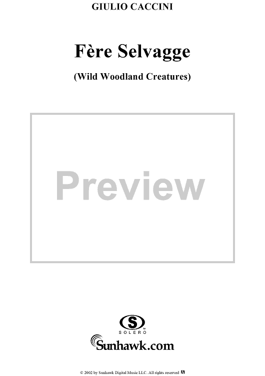Digital Sheet Music for Fère Selvagge, (Wild Woodland Creatures) by Giulio Caccini scored for Voice/Piano; id:253852