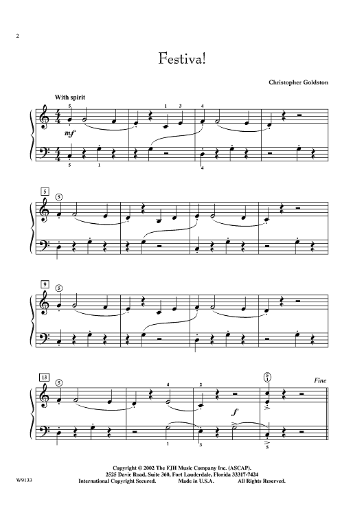 Fast paced and upbeat, this piece includes phrasing, articulation and a catchy, fun-filled melody students will enjoy playing. Excellent for recitals, Festiva! is a high-spirited tune that any audience is sure to appreciate.