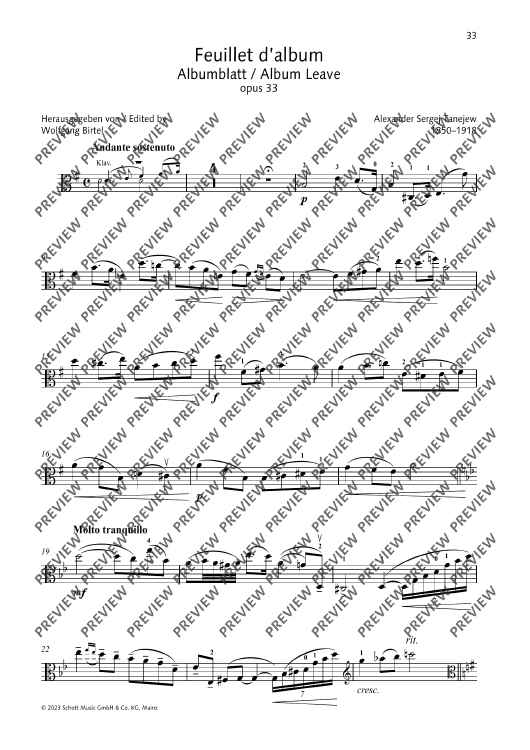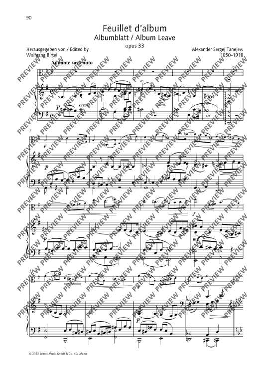 Digital Sheet Music for Feuillet d’album by Sergej Tanejev scored for Viola And Piano; id:499988