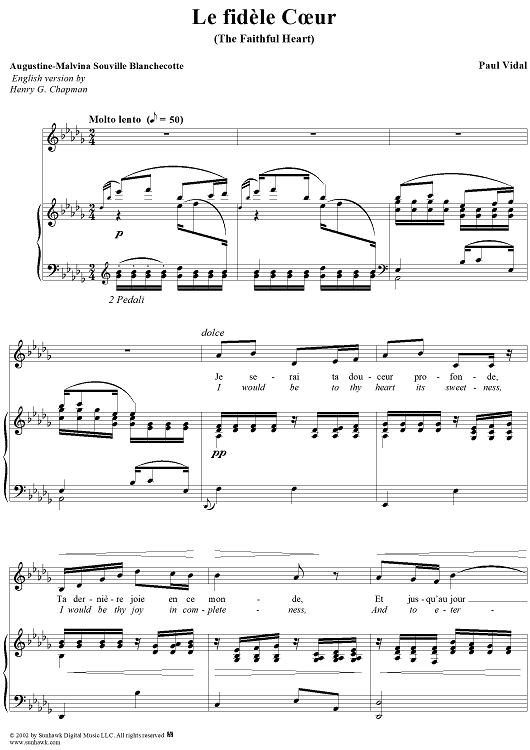 Digital Sheet Music for fidèle Cœur, Le, The Faithful Heart by Paul Vidal, Mme. Blanchcotte scored for Voice/Piano; id:264865