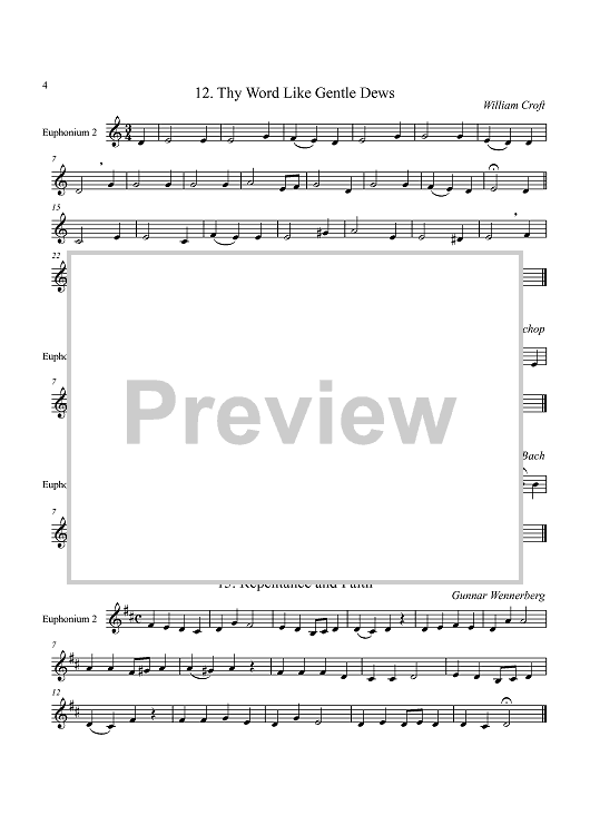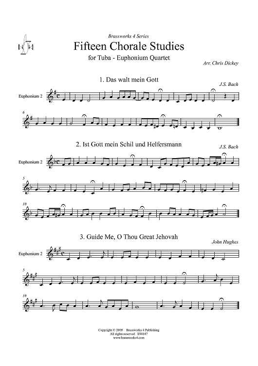 Digital Sheet Music for Fifteen Chorale Studies - Euphonium 2 TC by Johann Sebastian Bach, Chris Dickey scored for Tuba Quartet; id:411252