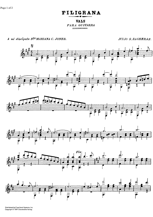Digital Sheet Music for Filigrana by Julio Sagreras scored for Guitar; id:327146