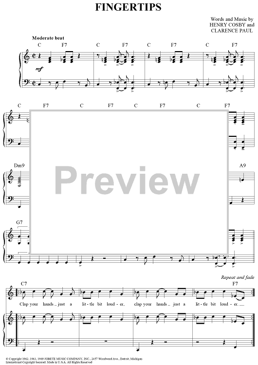 Digital Sheet Music for Fingertips by Stevie Wonder, Henry Cosby, Clarence Paul scored for Piano/Vocal/Chords; id:365369