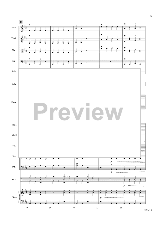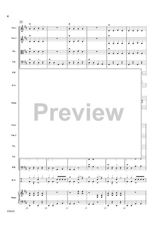 This driving and exciting rock-inspired tune will shock directors when they realize it only uses open strings and first finger in all instruments! Written with only quarter notes throughout, this is an ideal piece to either introduce students to the bow or to new strings. Complete with a bridge and short coda section, the piece includes an optional (and simple) drum set part. Real music using only open strings and first finger! (1:20)