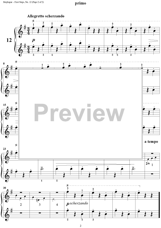 Digital Sheet Music for First Steps, No. 12 by , Samuel Maykapar scored for 1 Piano, 4 Hands; id:365235