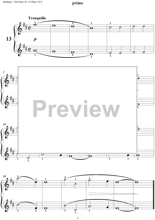 Digital Sheet Music for First Steps, No. 13 by , Samuel Maykapar scored for 1 Piano, 4 Hands; id:365236