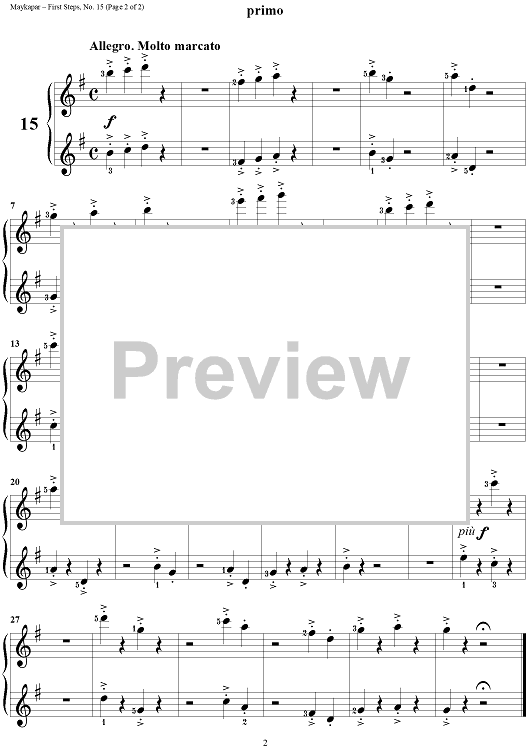 Digital Sheet Music for First Steps, No. 15 by , Samuel Maykapar scored for 1 Piano, 4 Hands; id:365238