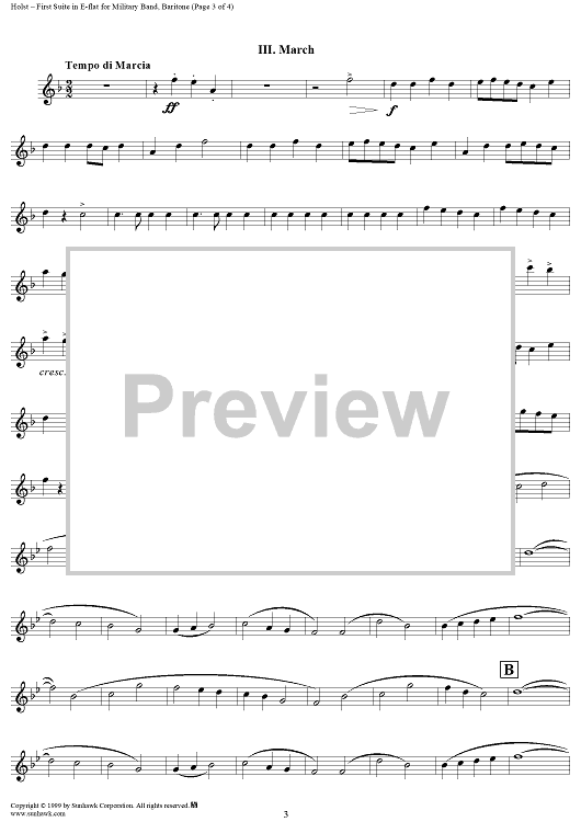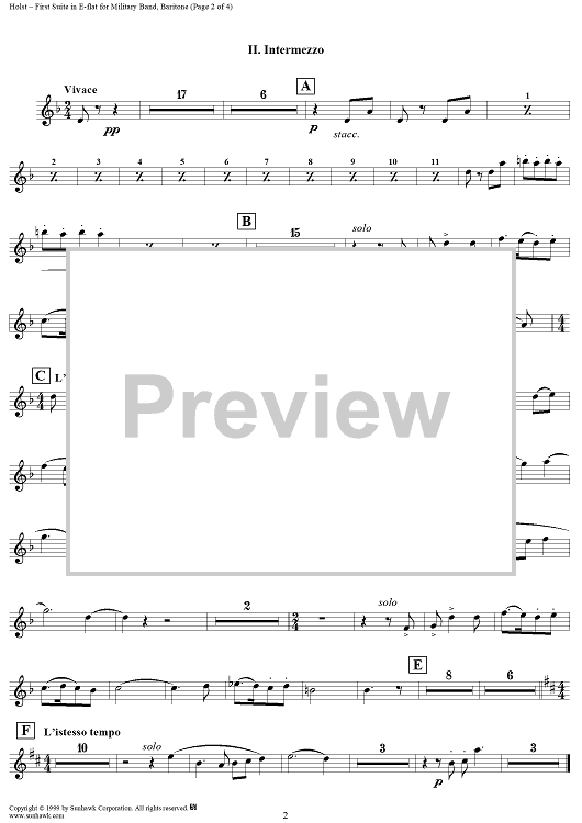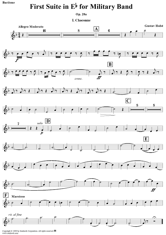 Digital Sheet Music for First Suite in E-flat, Op. 28a - Baritone by Gustav Holst scored for Concert Band; id:235077