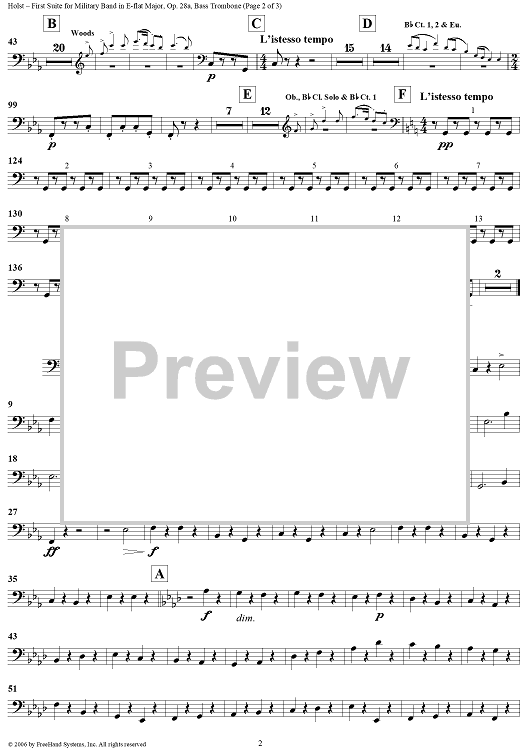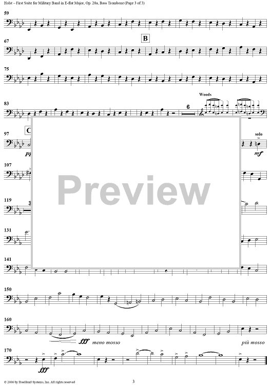 Digital Sheet Music for First Suite in E-flat, Op. 28a - Bass Trombone by Gustav Holst scored for Concert Band; id:311118