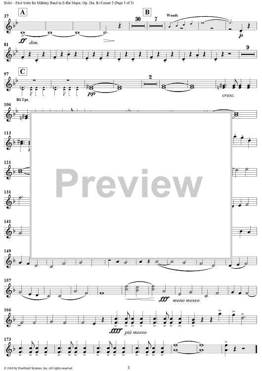 Digital Sheet Music for First Suite in E-flat, Op. 28a - Cornet 2 by Gustav Holst scored for Concert Band; id:311112
