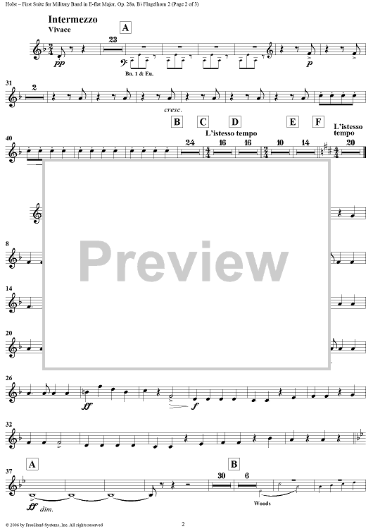 "First Suite in E-flat, Op. 28a - Flugelhorn 2" Sheet Music by Gustav Holst