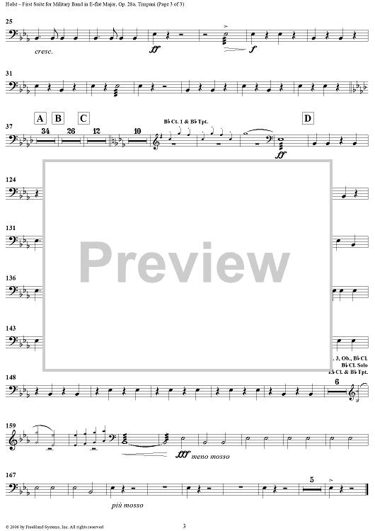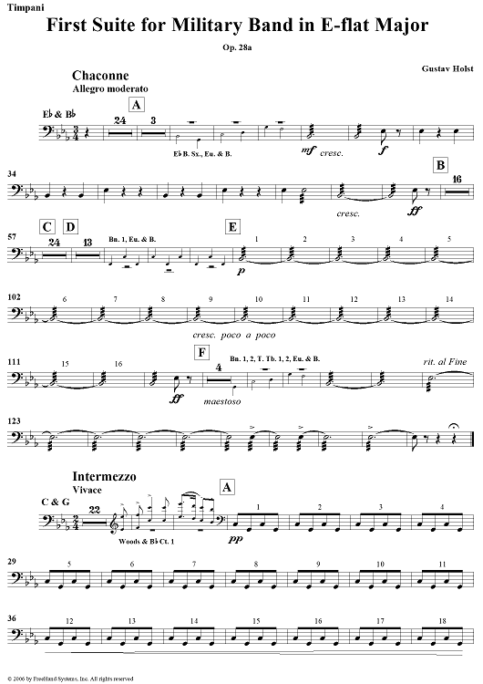 Digital Sheet Music for First Suite in E-flat, Op. 28a - Timpani/Triangle by Gustav Holst scored for Concert Band; id:311122