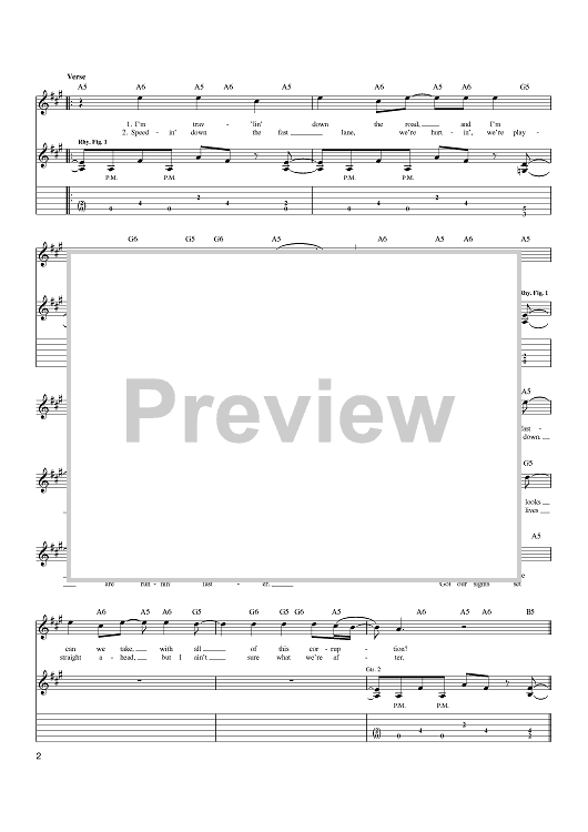 "Flirtin' With Disaster" Sheet Music by Molly Hatchet