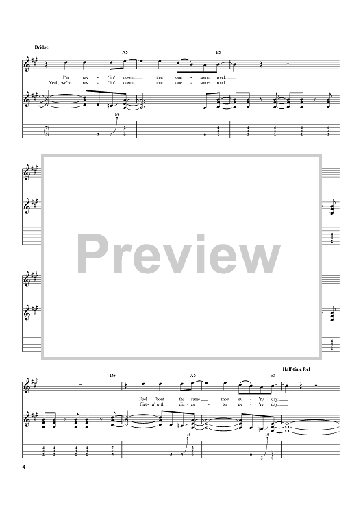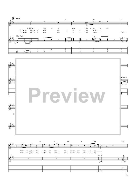 Digital Sheet Music for Flirtin' With Disaster by The Danny Joe Brown Band, David Lawrence Hlubek, Molly Hatchet, Banner Harvey Thomas scored for Easy Guitar Tab; id:381950