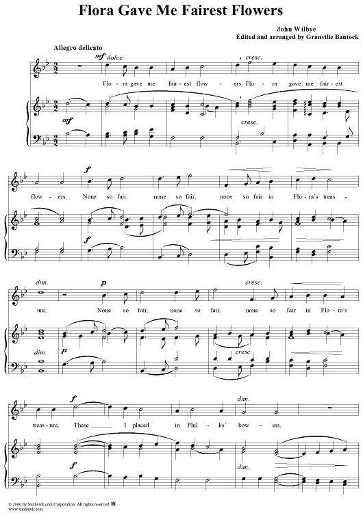 Digital Sheet Music for Flora Gave Me Fairest Flowers by John Wilbye, Granville Bantock scored for Voice/Piano; id:263304