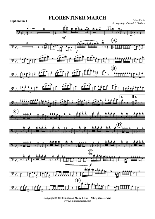 Digital Sheet Music for Florentiner March - Euphonium 1 by Julius Fucik, Michael J. Coldren scored for Tuba Quartet; id:409865