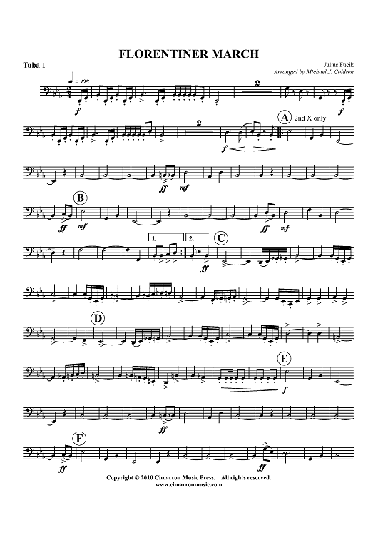 Digital Sheet Music for Florentiner March - Tuba 1 by Julius Fucik, Michael J. Coldren scored for Tuba Quartet; id:409867